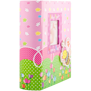 Розовый детский фотоальбом с кармашками на 200 фотографий формата 10x15 см.