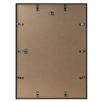 Рамка укомплектована защитным прозрачным пластиковым стеклом ПЭТ, задником из шлифованного ДВП и настенными подвесами для горизонтального и вертикального размещения.