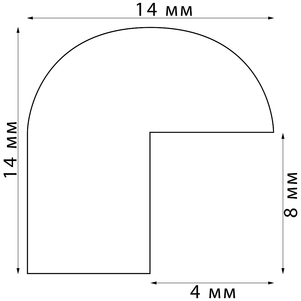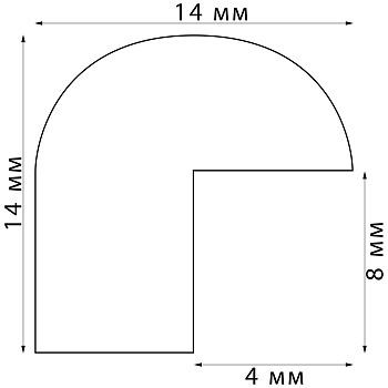 Толщина профиля 14 мм, ширина 14 мм. Толщина задника 1 мм, защитной вставки из минерального стекла 1,3 мм.