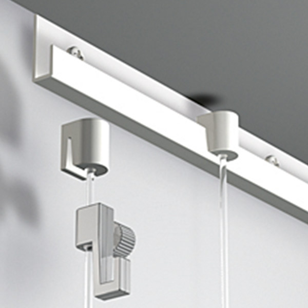 Вы можете использовать для размещения картин как леску (только леска "Слайдер"), так и стержень. При использовании лески необходим специальный адаптер.