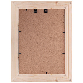 Укомплектованы твердым задником из МДФ и подвесами для горизонтального и вертикального размещения на стене. В качестве защитной вставки используется прозрачный пластик ПЭТ, что облегчает раму и делает ее травмобезопасной. Вставка плотно прилегает к фигурному краю багета и надежно защищает изображение внутри рамы.