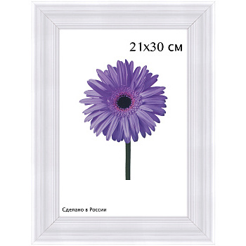 Белая рамка 21x30 (A4) из фигурного деревянного багета шириной 42мм.