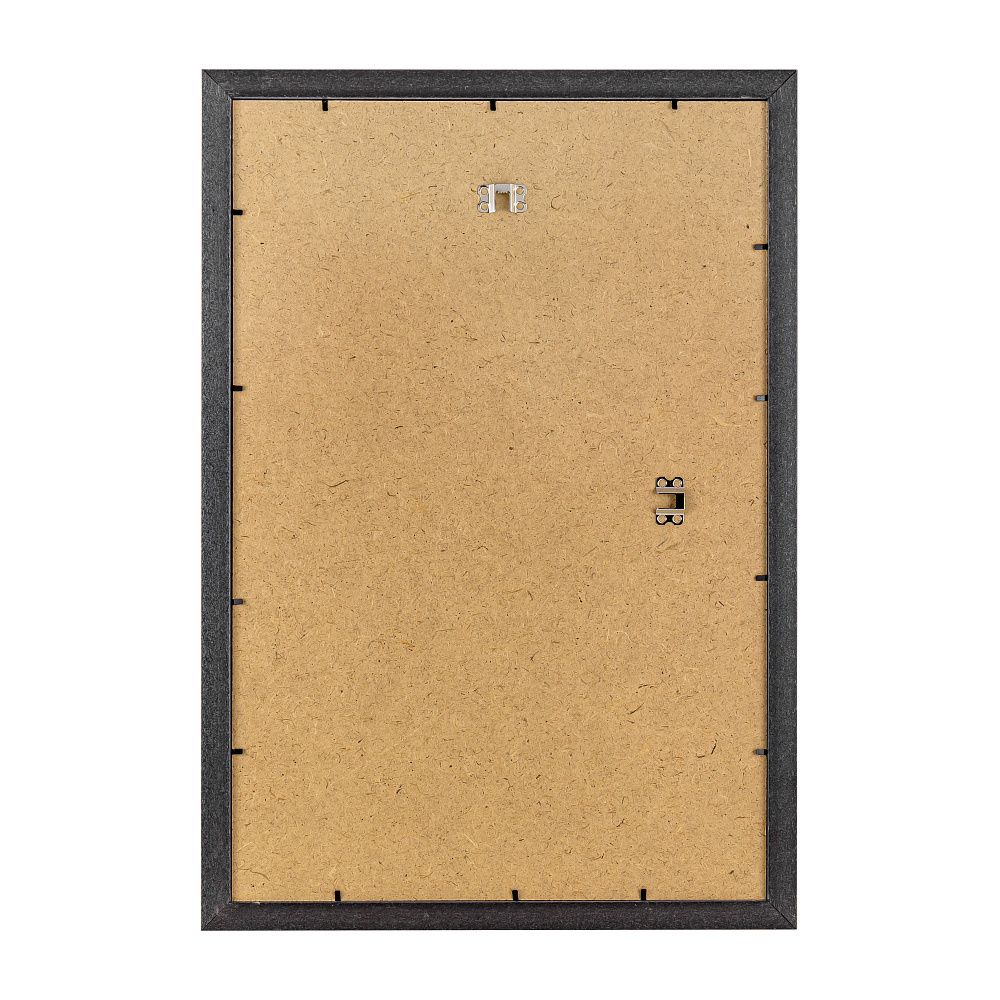 Укомплектована твердым задником из оргалита, подвесом для горизонтального или вертикального подвешивания. В качестве защитной вставки используется прозрачный пластик, что облегчает раму и делает ее травмобезопасной. Вставка плотно прилегает к фигурному краю багета и надежно защищает изображение внутри рамы.