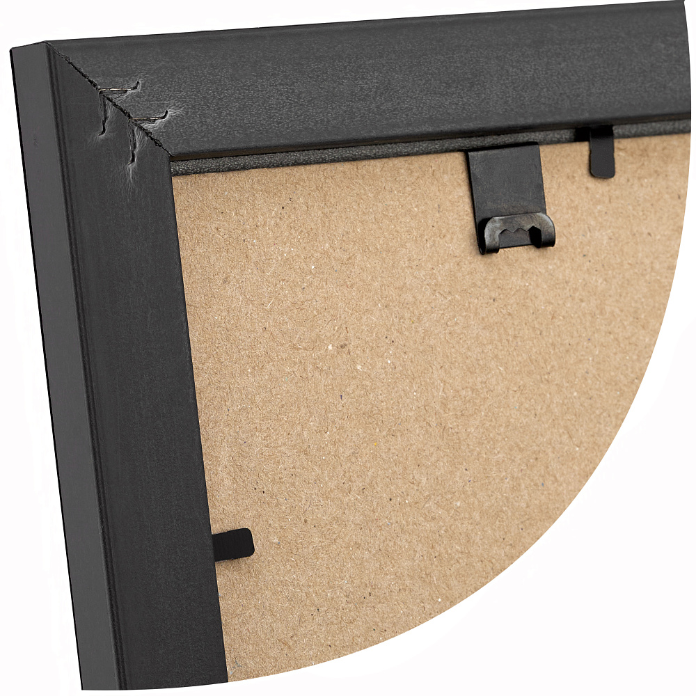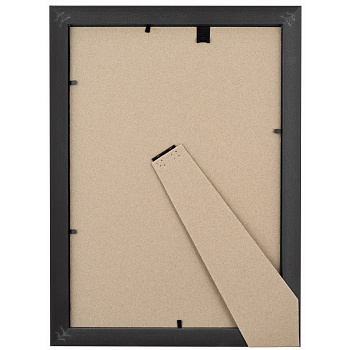Рамка изготовлена из высококачественных комплектующих - пластикового профиля, задника из переплетного картона с ножкой и защитной вставки из пластика ПЭТ.