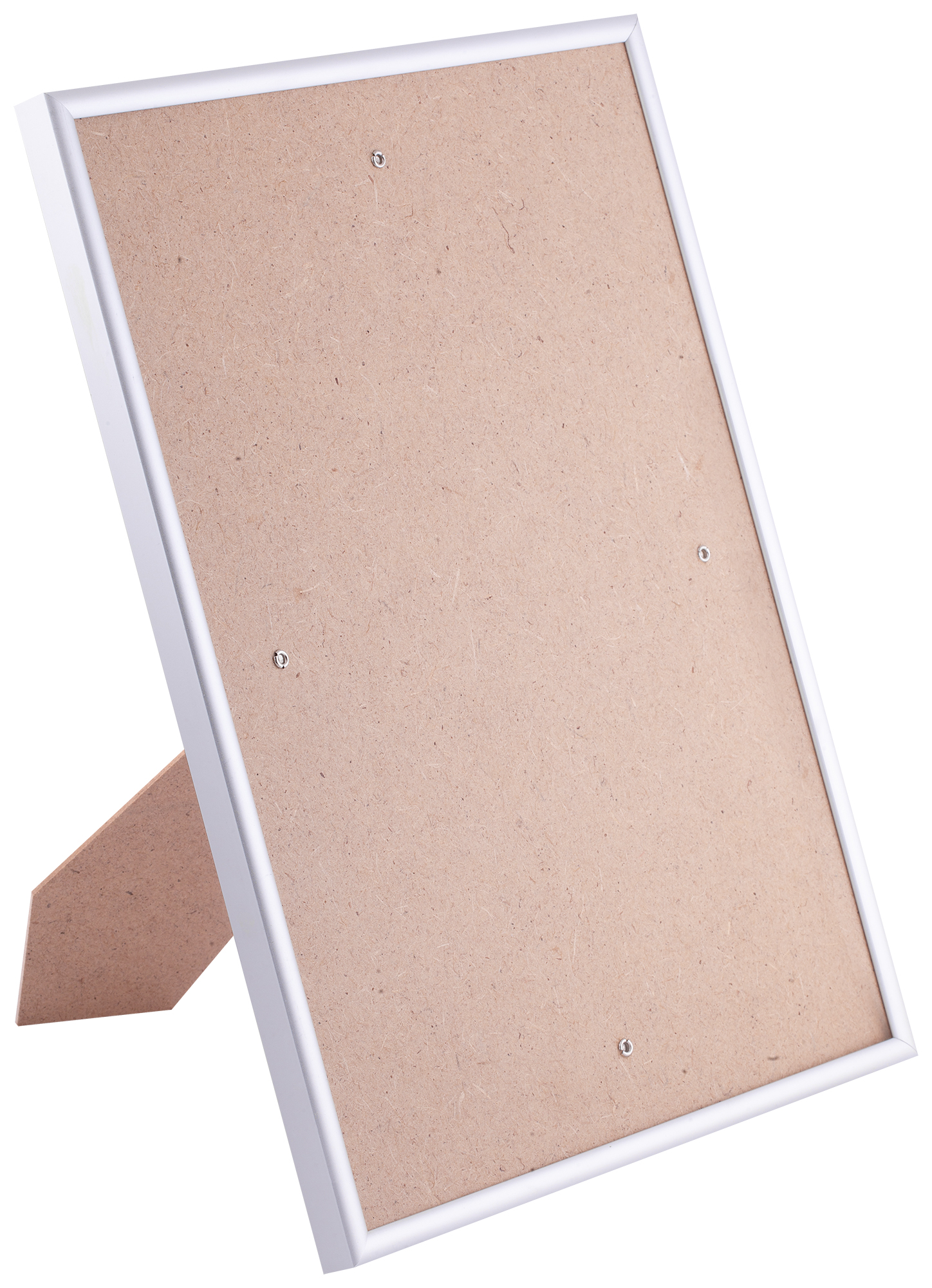Серебристая матовая алюминиевая рамка 21х30 см (А4) из округлого багета шириной 8 мм с улучшенной системой креплений и двухсторонней ножкой-подставкой.