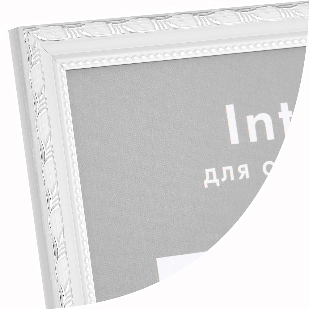 Белая рамка 21x30 (A4) из полукруглого багета шириной 15 мм с серебряной вязью