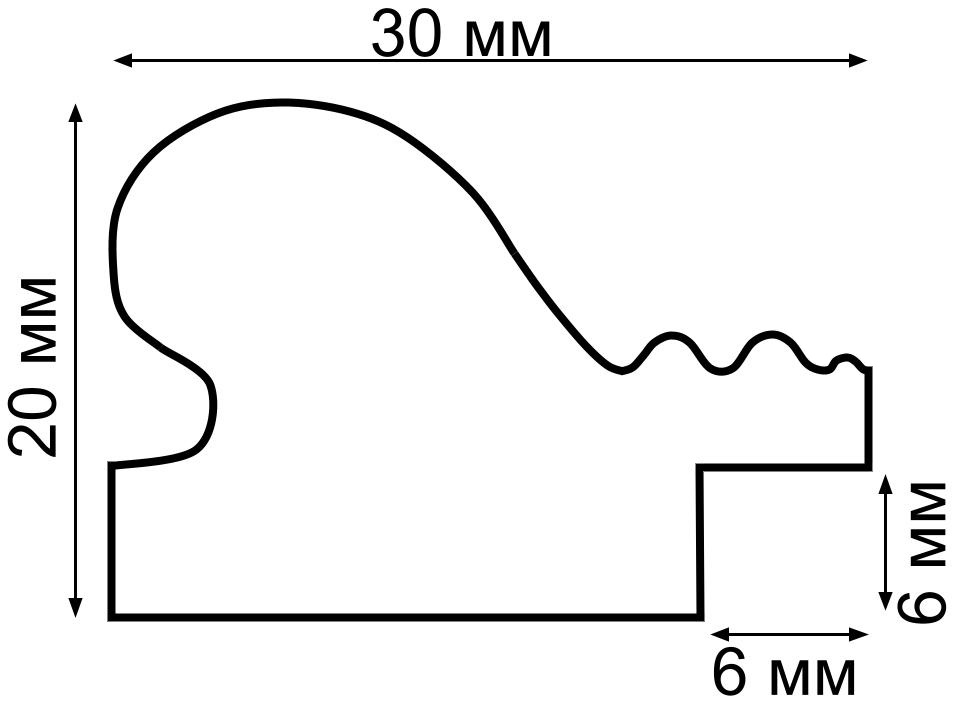 Толщина профиля 20 мм, ширина 30 мм. Толщина задника 2 мм, защитной вставки их пластика ПЭТ 0,5 мм.