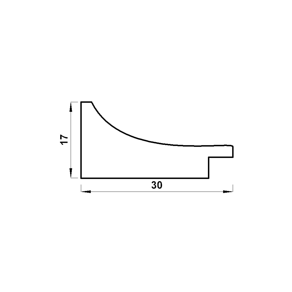 Толщина профиля 17 мм, ширина 30 мм, толщина задника 2.5 мм, защитной вставки из пластика 1 мм.