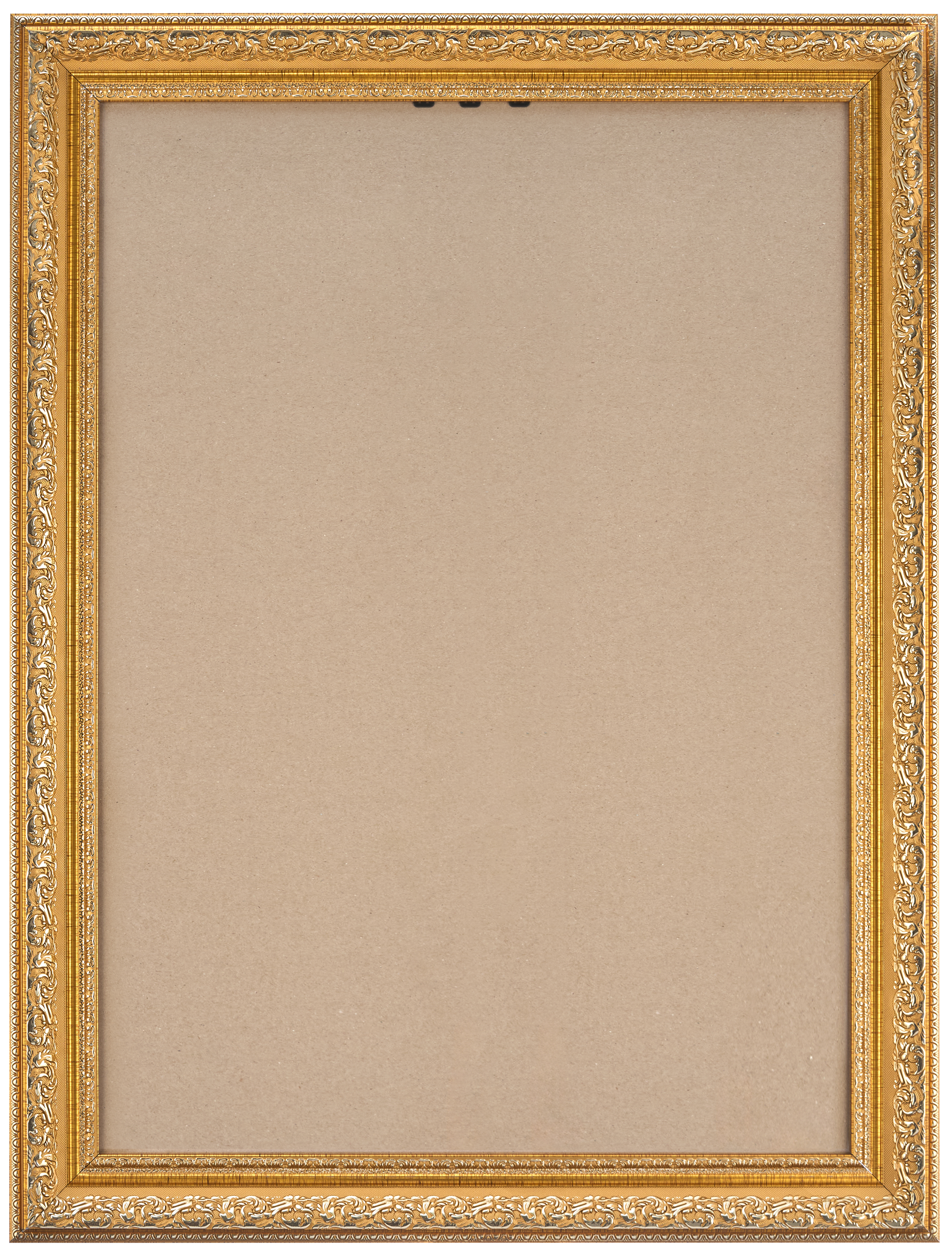 Золотая рамка 50x70 из округлого багета формы волны шириной 60 мм с широкой золотой вязью и золотым кантом по внутреннему и внешнему периметру.