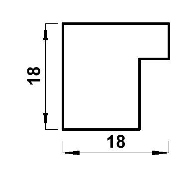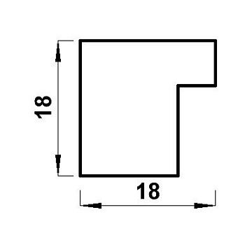 Толщина профиля 18 мм, ширина 18 мм, толщина задника 2.5 мм, защитной вставки из пластика 1 мм.