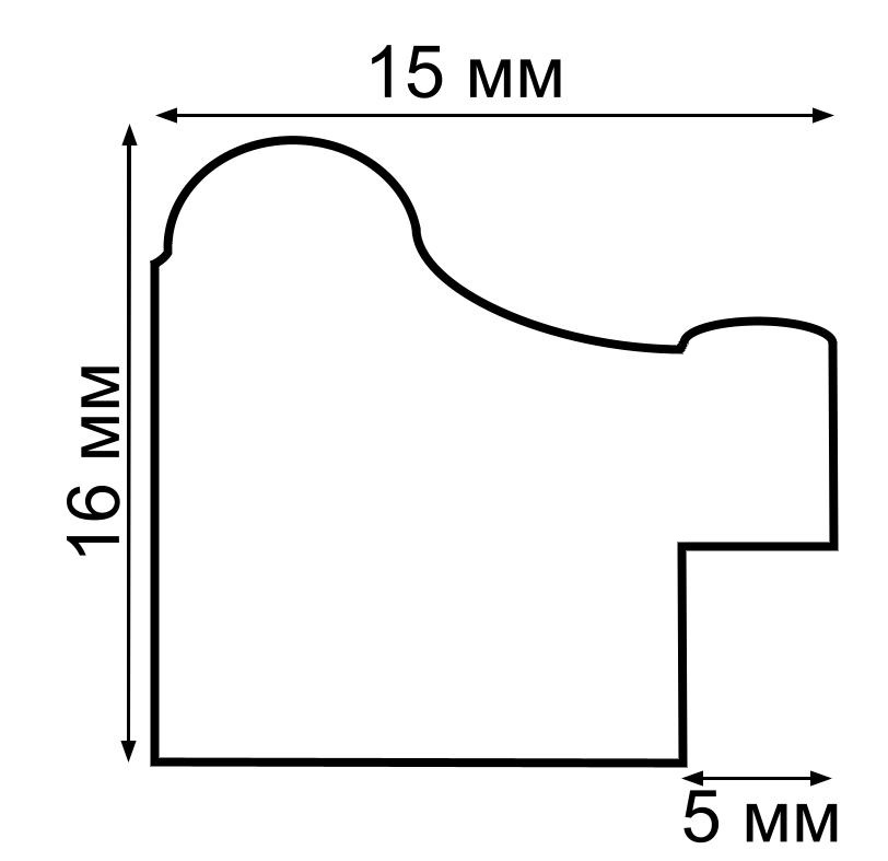 Толщина профиля 16 мм, ширина 15 мм. Толщина задника 2 мм, защитной вставки их пластика ПЭТ 0,5 мм.