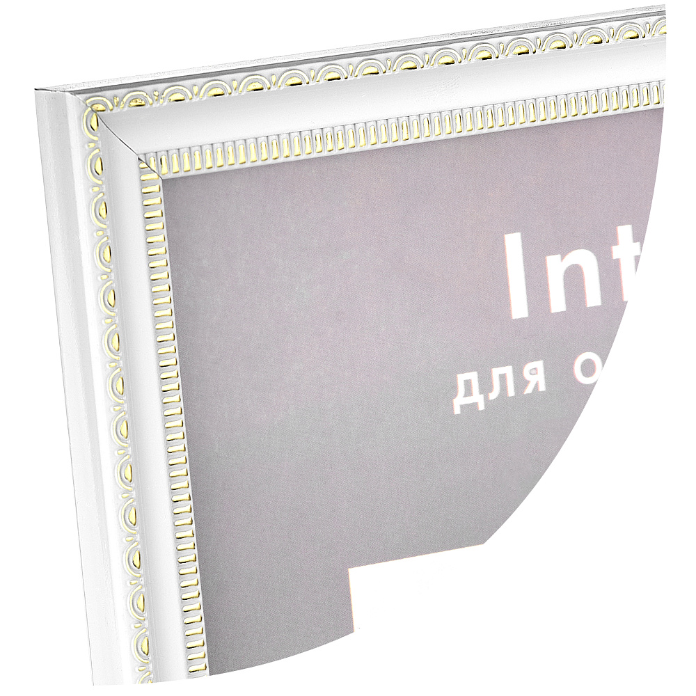 Белая рамка 21x30 (A4) из полукруглого багета шириной 15 мм с золотой вязью