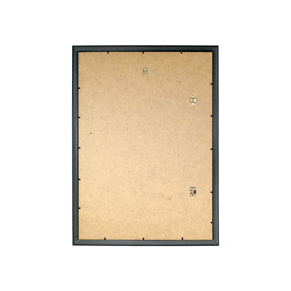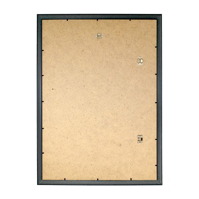 Укомплектована твердым задником из оргалита, подвесом для горизонтального или вертикального подвешивания. В качестве защитной вставки используется прозрачный пластик, что облегчает раму и делает ее травмобезопасной. Вставка плотно прилегает к фигурному краю багета и надежно защищает изображение внутри рамы.