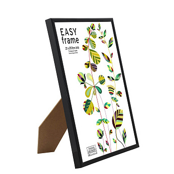 Рамка укомплектована защитным минеральным стеклом 2 мм, двусторонней ножкой-подставкой с надежным креплением к заднику из шлифованного ДВП и настенными подвесами для горизонтального и вертикального размещения.