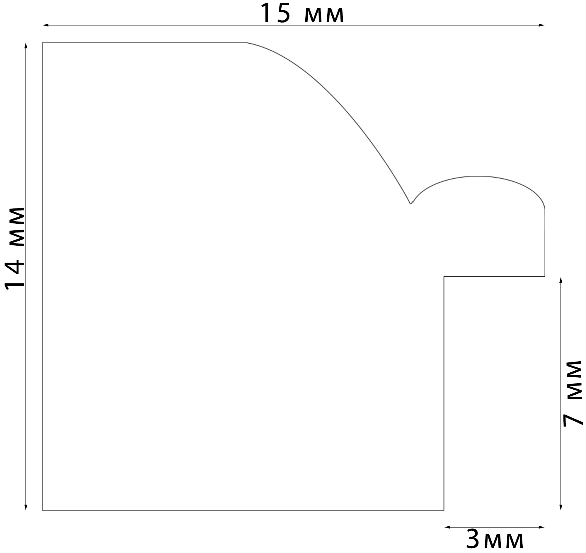 Толщина профиля 14 мм, ширина 15 мм. Толщина задника 1 мм, защитной вставки из прозрачного пластика ПЭТ 0,5мм.
