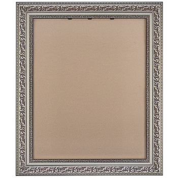 Черная рамка 40x50 из округлого багета формы волны шириной 60 мм с широкой серебряной вязью и серебряным кантом по внутреннему и внешнему периметру.