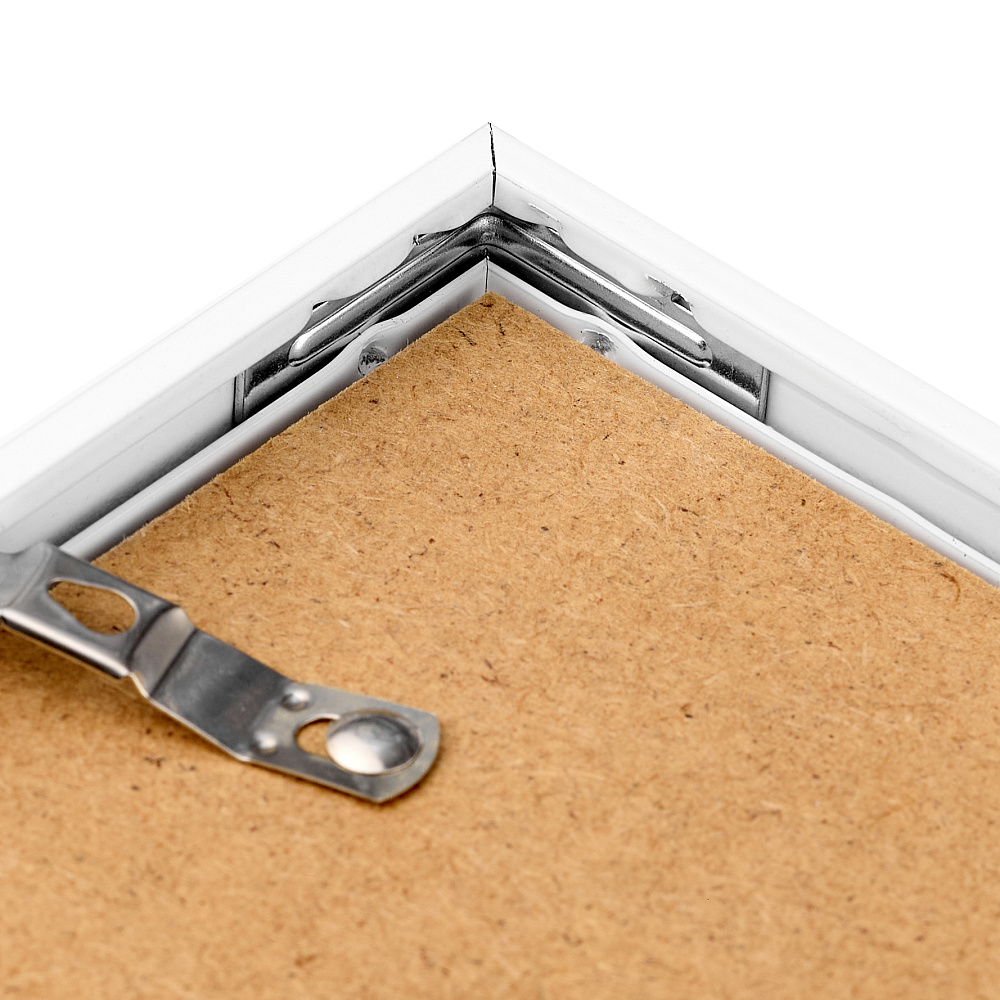 Белая глянцевая алюминиевая рамка 40x60 из округлого багета шириной 8 мм с улучшенной системой креплений.