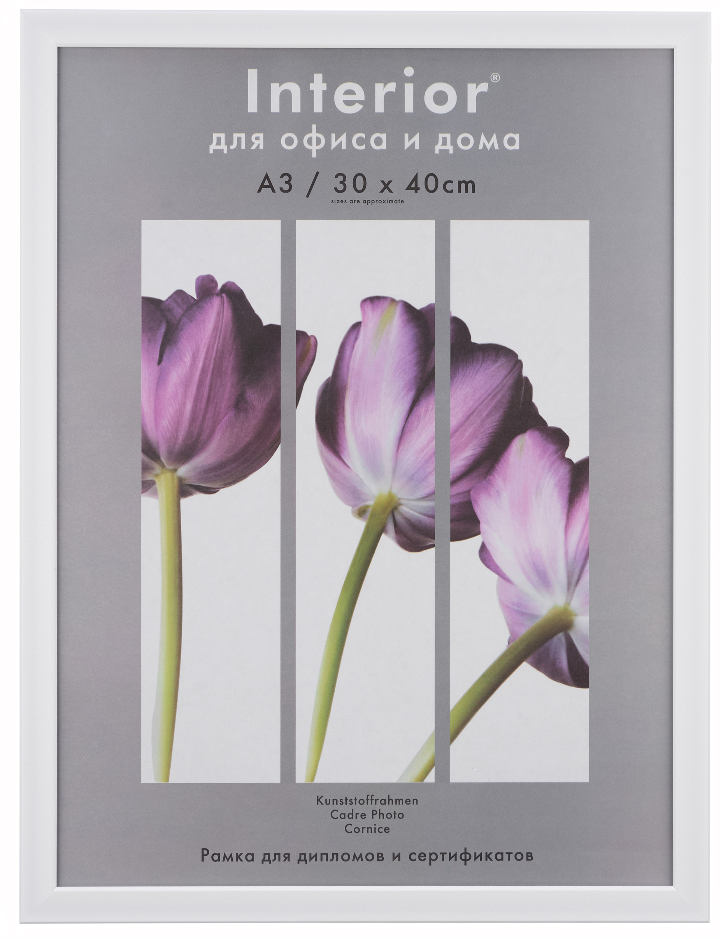 Рамка изготовлена из качественного пластикового профиля, задника из переплетного картона и защитной вставки из пластика ПЭТ.