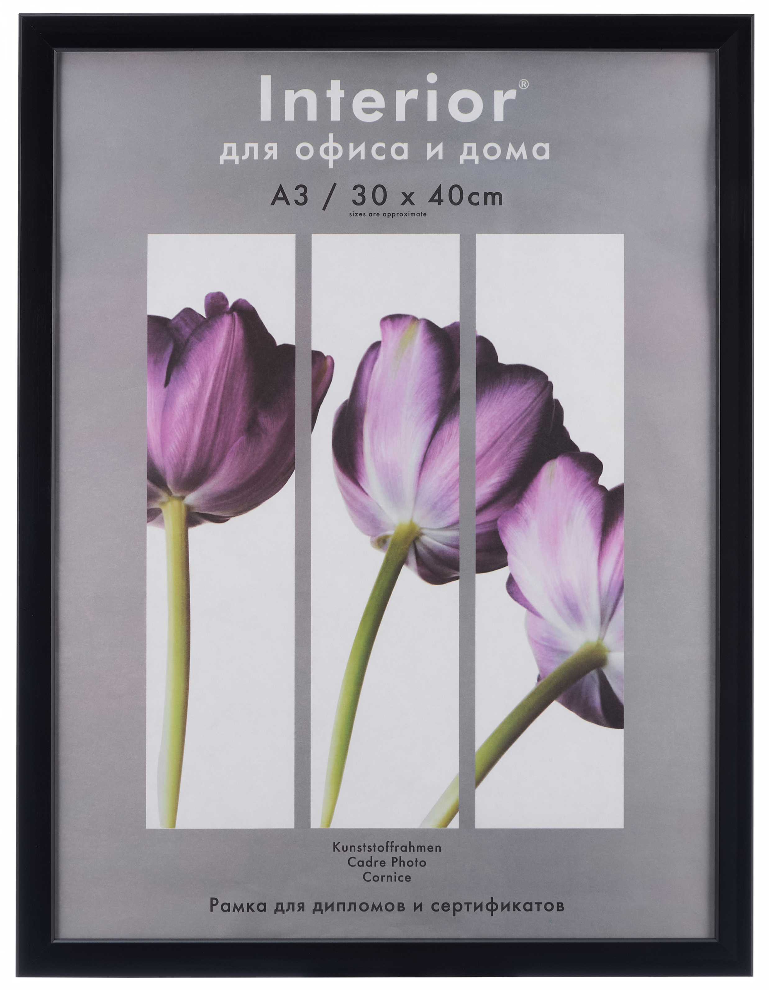 Рамка изготовлена из качественного пластикового профиля, задника из переплетного картона и защитной вставки из пластика ПЭТ.