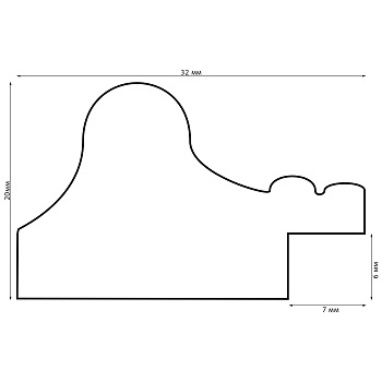 Толщина профиля 20 мм, ширина 32 мм, толщина задника 2.5 мм, защитная вставка пластик ПЭТ 0,7 мм.