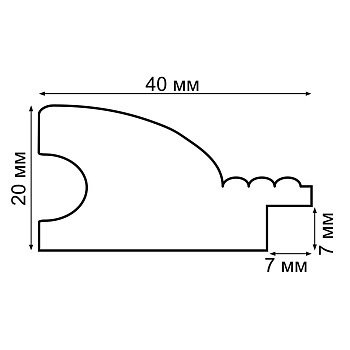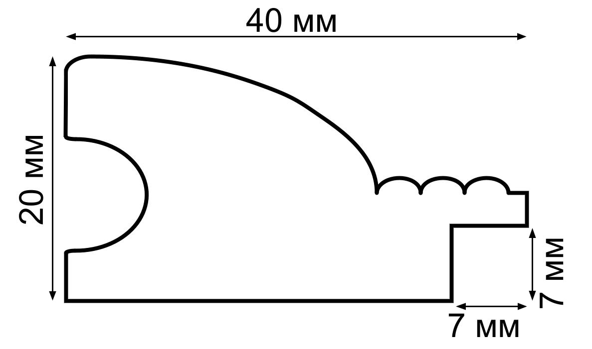 Толщина профиля 20 мм, ширина 40 мм. Толщина задника 2 мм, защитной вставки их пластика ПЭТ 0,5 мм.