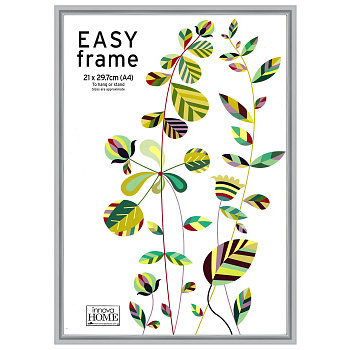 Массивная рамка 21х30 см (А4) из литого пластикового багета в цвете серебряный металлик.