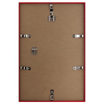 Рамка укомплектована защитным минеральным стеклом 2 мм, задником из шлифованного ДВП и настенными подвесами для горизонтального и вертикального размещения.