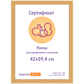 Рамка бизнес-класса марки DB8 изготовлена из высококачественных комплектующих - ламинированного профиля МДФ, жесткого задника из ДВП и защитной вставки из прозрачного пластика ПЭТ. Укомплектована металлическими подвесами для горизонтального и вертикального размещения.