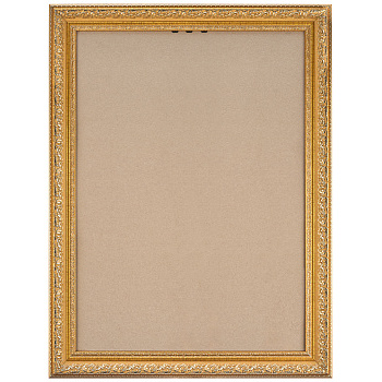 Золотая рамка 50x70 из округлого багета формы волны шириной 60 мм с широкой золотой вязью и золотым кантом по внутреннему и внешнему периметру.