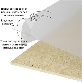 Внимание! Перед первым использованием с пластикового стекла необходимо снять матовую защитную транспортировочную пленку с двух сторон пластиковой вставки. Черный текст на вставке содержит номер и серию партии и напечатан на защитной пленке.