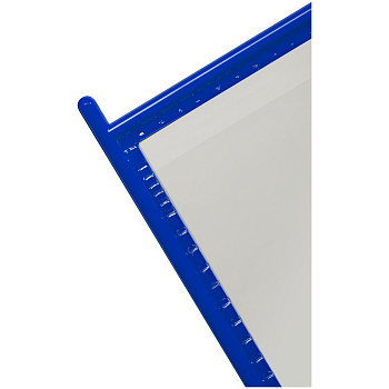 Рамки с штырьками для фиксации в креплении перекидной системы изготовлены из жесткого синего пластика. Пластиковый карман для вложений имеет антибликовую поверхность, что позволяет четко видеть информацию с разных углов обзора.