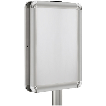 Клик-профиль очень практичен и позволяет просто и быстро заменить вложение. Прижимной профиль просто раскрывается, извлекается защитная вставка, и вложение можно заменить. Укомплектованы декоративным уголком, задником из ПВХ, защитной антибликовой пластиковой вставкой 0.4мм