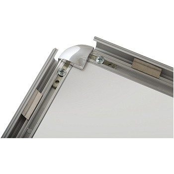 Клик-профиль очень практичен и позволяет просто и быстро заменить вложение. Прижимной профиль просто раскрывается, извлекается защитная вставка, и вложение можно заменить. Укомплектованы декоративным уголком, задником из ПВХ, защитной антибликовой пластиковой вставкой 0.4 мм