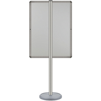 Стойка 1,4 метра с круглым основанием и одной рамкой 42x59.4 (A2) алюминий-клик под углом 90 гр.
